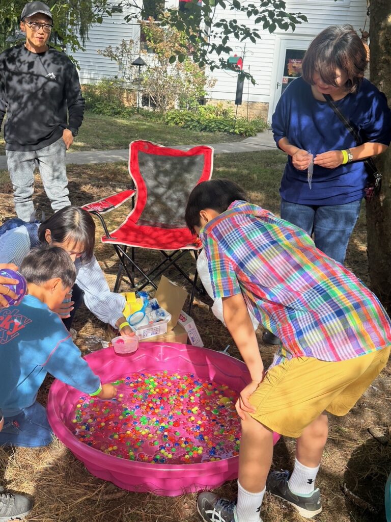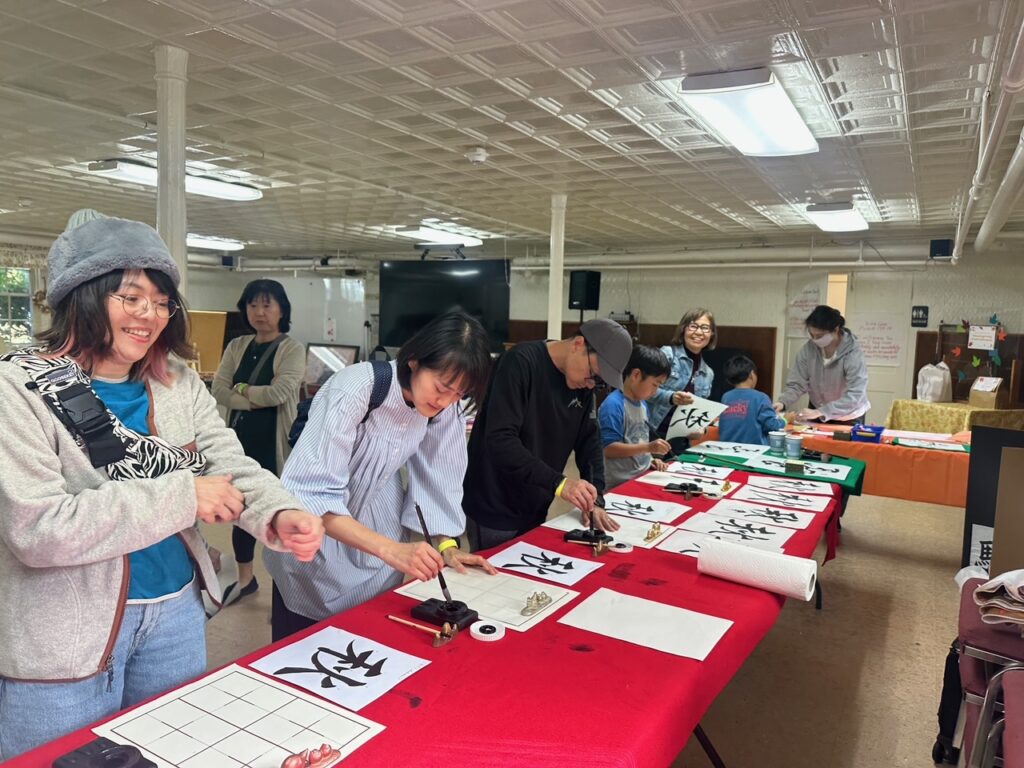 10月18日は新企画である、秋を楽しもう!フォールフェストを開催しました。当日はとてもお天気が良く、外でも上着いらずの過ごしやすい日でした。新企画であるこのフォールフェストは大人も子供も楽しめるテーマだったため、様々な年齢層の方からの申し込みを頂き、総勢76名の参加となりました。室内では、会員の皆さんに出展して頂いたアートギャラリーやバリンジャ恵さんによる書道体験コーナーが賑やかでした。甘味処らぱんからは秋の味覚、小豆と栗のおこわ・炊き込みおこわ・カボチャを使ったスイーツが振舞われました。ギャラリー内では出展者の皆さんの作品を囲み、参加者同士の交流があったり、書道体験コーナーでは皆さん真剣な様子で筆を持っていました。外ではPJAスポンサーブースと、縁日を再現したコーナーがあり、綿飴にポップコーンマシーンと、本格的な祭りの雰囲気を体験してもらうことができました。「親子であそぼ!」会員ボランティアによる手作り輪投げゲーム、水風船釣り、スーパーボールすくいも賑やかで、大人たちも子供の頃を思い出し楽しんでいる様子でした。そして、昨年の会員企画であったハロウィン・スリラーダンスが今回は盆踊りスリラーダンスにアレンジされ、簡単な振り付けになったことでより多くの方が踊りに参加されていました。参加者の皆さんが、このフォールフェストで秋の季節と様々な日本の文化を楽しんで下さったようで、大変嬉しく思います。今回は残念ながら参加出来なかった方は、また来年を楽しみにしていてください!