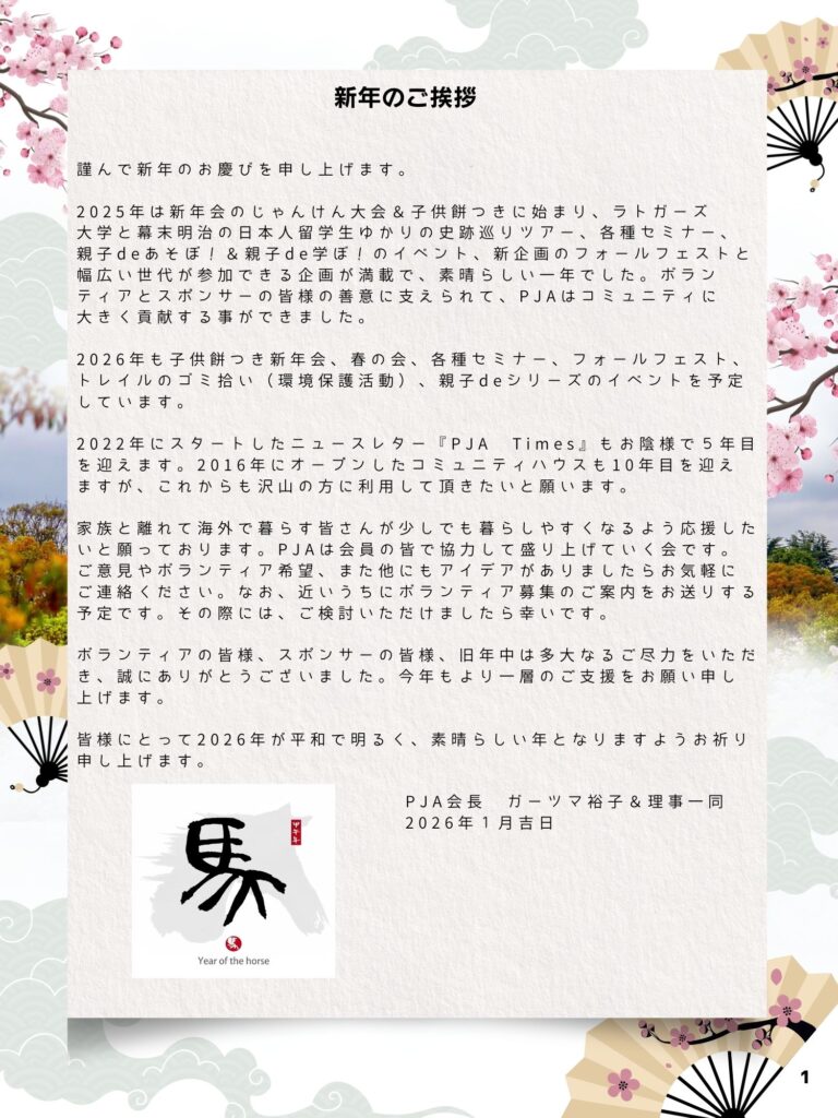 2026-01-08 / 最終更新日時 : 2026-01-08 PJA PJA活動報告 2026年 新年のご挨拶 Share: Facebook で共有するにはクリックしてください (新しいウィンドウで開きます) Facebook クリックして X で共有 (新しいウィンドウで開きます) X