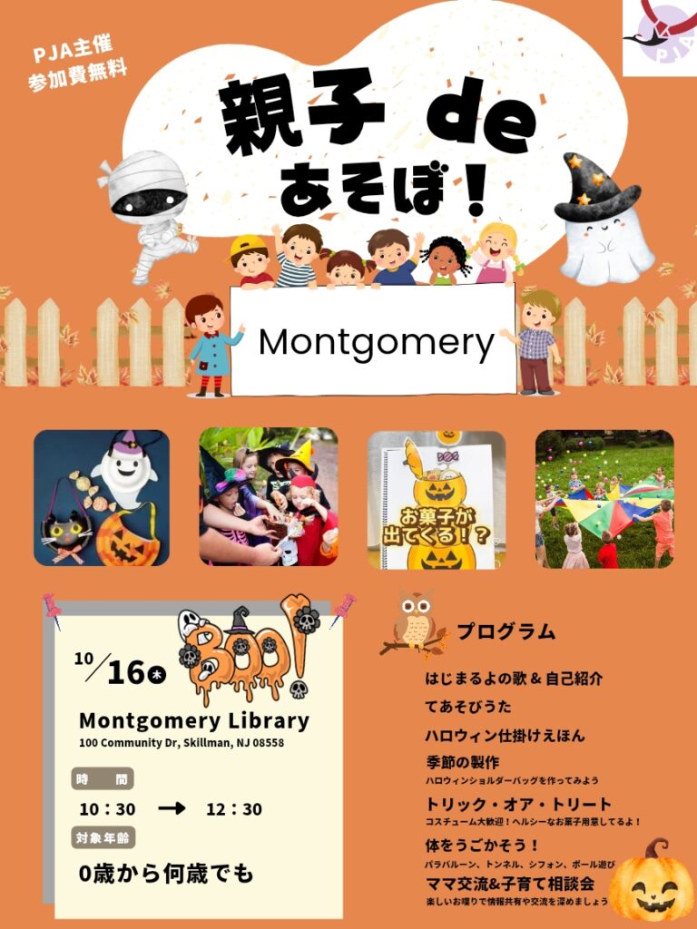こんばんは。親子deあそぼ!Montgomery ハロウィンパーティーの告知です。